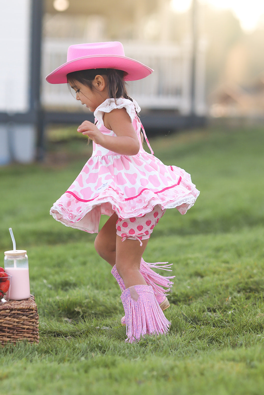 ✿ Pink Cow Print with Strawberry Print accents!
