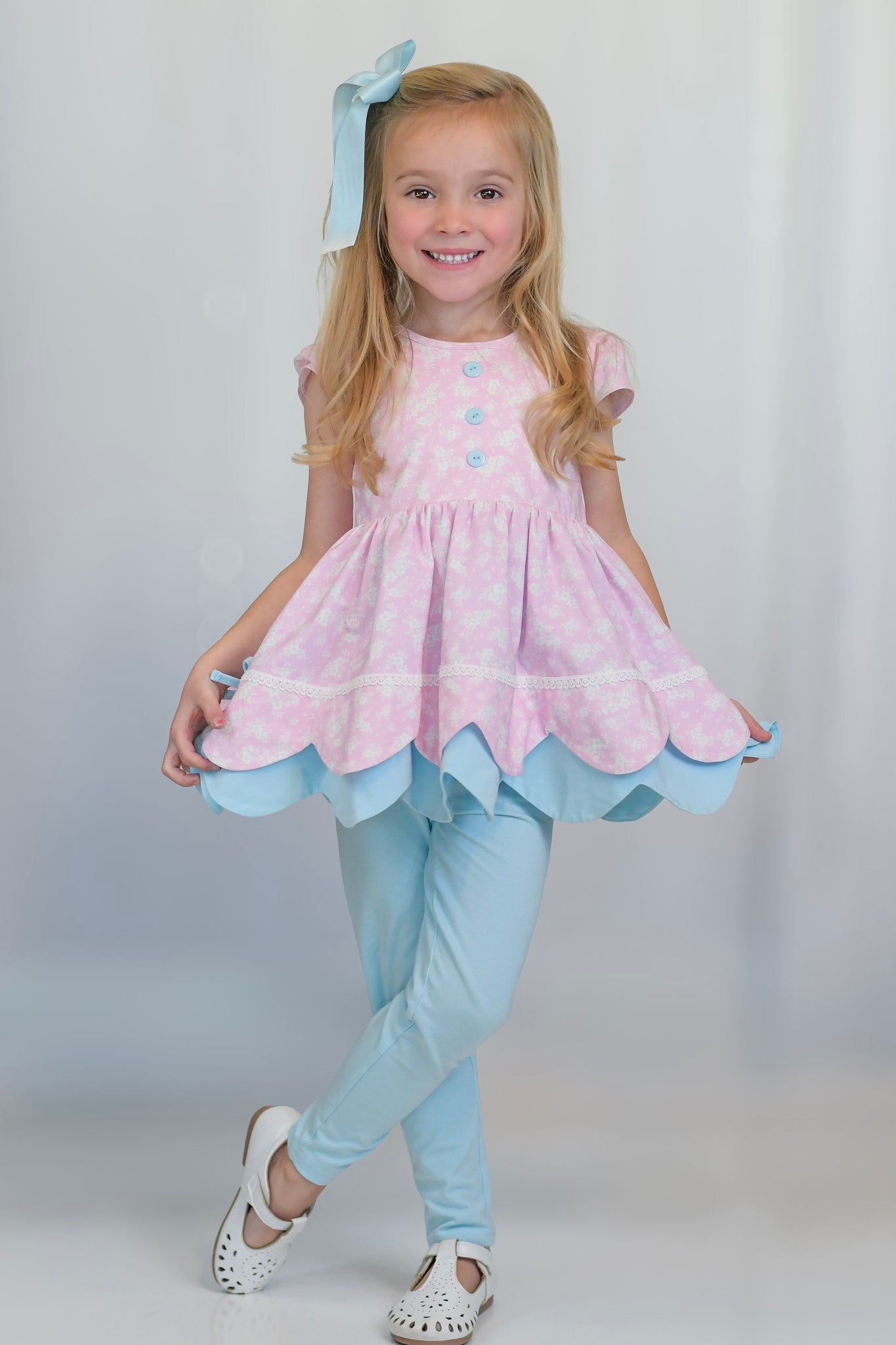 Ellie Scalloped 3 Piece Tunic Set - Ditzy Spring Floral